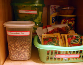 items (green baskets) as well as dried goods in sealed containers. Everything is labeled!
